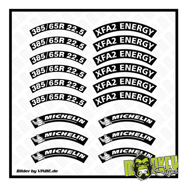 18 teiliges Set Reifenbeschriftung - je 6x "XFA2 ENERGY"/ 6x "385" / 6x "Michelin"
