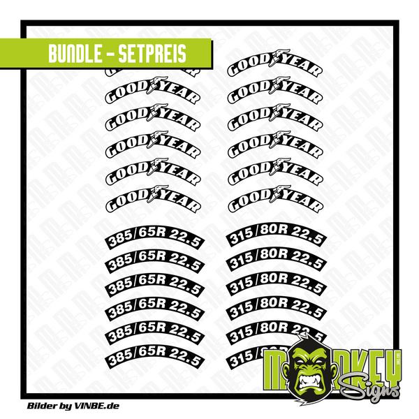 • Menge: 2x 6er Set Goodyear, 1x 6er Set 385 und 1x 6er Set 315