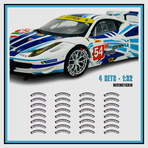 4x8er Set Reifen Markierung Bridg. Aufkleber Decal 1:32 für Slot Car Carrera 132