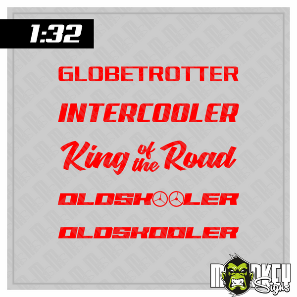 5-teiliges Set Frontscheibenaufkleber 1:32 Sticker Zubehör LKW Modellbau rot