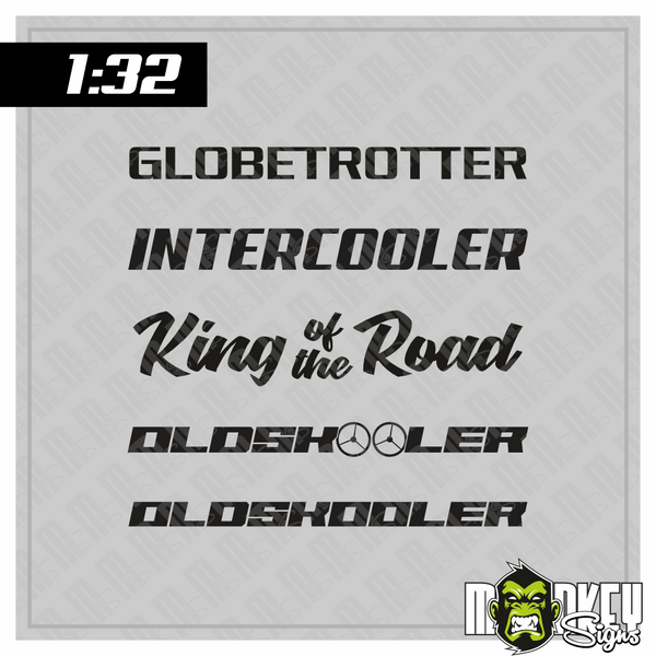 5-teiliges Set Frontscheibenaufkleber 1:32 – Zubehör für RC LKW & Modellbau