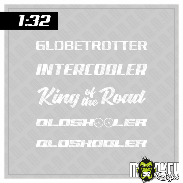 5-teiliges Set Frontscheibenaufkleber 1:32 – Zubehör für RC LKW & Modellbau