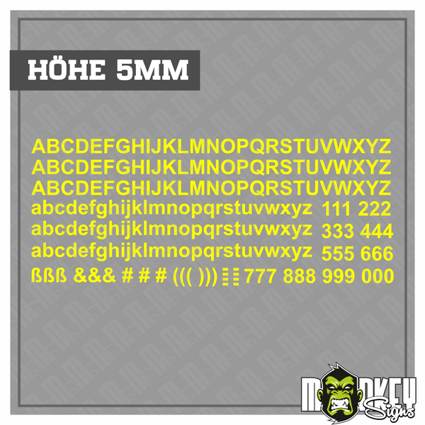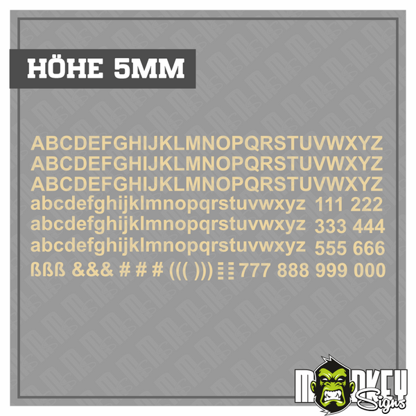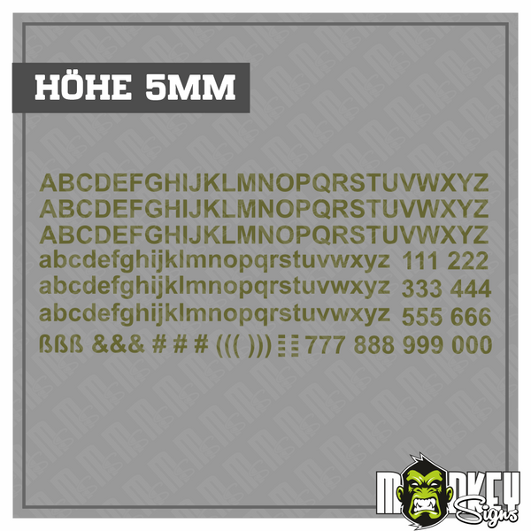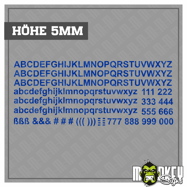 - Abmessung : Höhe der Großbuchstaben je 5mm