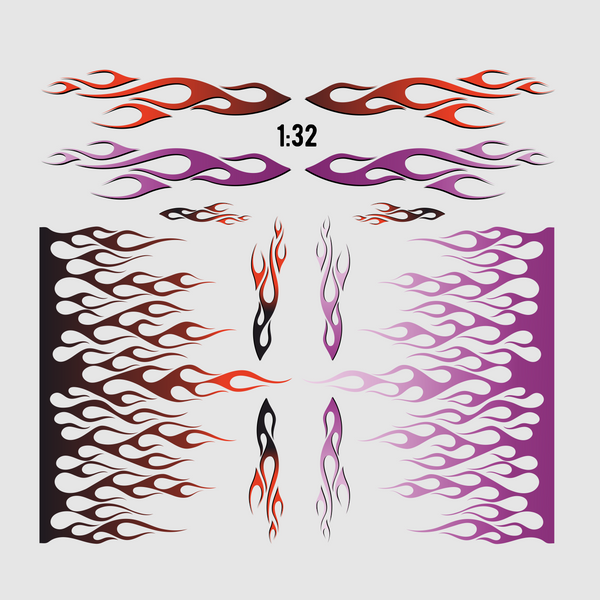 (B) Waterslide Decal 1:32 Flammen Flames Rod Racing Carrera Slotcar USA NASCAR
