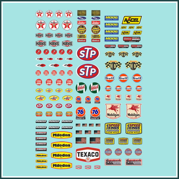Decal 1:24 / 1:18 - 144tlg. f. Schweller & Kotflügel Racing Slotcar Gasoline USA