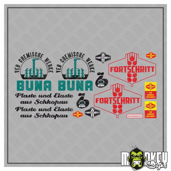 Dieses hochwertige Aufkleberset besteht aus 15 detailgetreuen Beschriftungen im Werbe-Design und eignet sich perfekt zur Individualisierung und Aufwertung deiner Spur G Modelle und Gartenbahn-Wagen.
