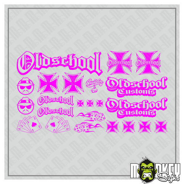 23-teiliges Aufkleber Set „Oldschool Customs, passend für zB Tamiya LKW im Maßstab 1:14