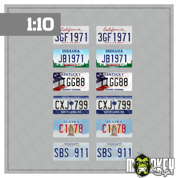 USA Nummernschilder 1:10 Modellbau Aufkleber – 6 Paar Kennzeichen Set RC Cars