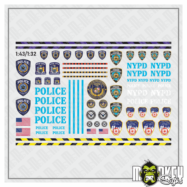 Waterslide Decal 1:43 - 1:32 NYPD FDNY New York Police & Fire Dep. USA V8