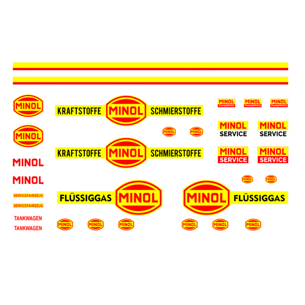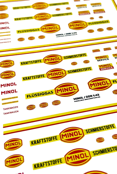 Waterslide Decal 1:87 - 31tlg. DDR VEB Minol Benzin Kamaz W50 Truck LKW Multicar Modellbau Beschriftung